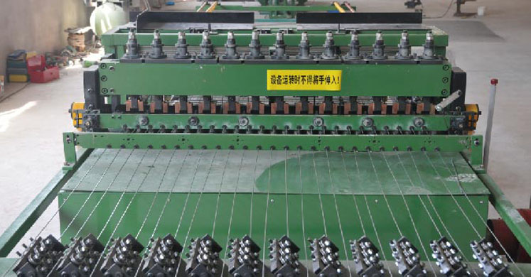 竖丝入料:盘丝经过调直轮,进入焊机,由伺服电机循环拉出网格