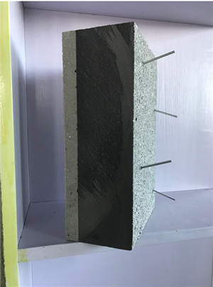 (8)保温一体板当外膜板使用,施工结束时不拆除,浇筑混凝土时只浇筑钢丝透出保温一体板的一面,并通过锚栓或斜插丝捆绑混凝土钢筋笼上连接使其更加安全可靠,斜插丝接触不到钢筋笼的只现浇混凝土不捆扎,还可以每平方将增加2个U型钢筋穿透保温板将露出保温板的钢筋捆扎在混凝土的钢筋笼上,进行加强牢固性,具有极佳的可靠性。