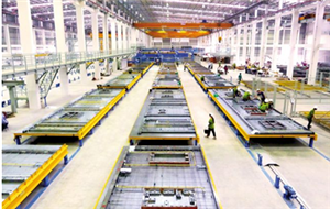 混凝土预制构件是在底模托盘上制造——从清洁托盘开始,一直到运出已经养护好的混凝土构件。底模托盘在各个工作站之间移动,完成生产线的每个生产步骤。底模托盘由一块钢板制成,钢板带有防振动、涂漆的焊接钢结构,模板的表面经过抛光打磨的处理。