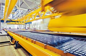 为了生产出高质量的混凝土预制构件,提高生产过程的自动化程度,中天节能全自动的机械手系统。入/出库机械手根据 ebos® 传输的 CAD 数据,从磁性边模库中选择提取出必要的边模。边模置放机械手根据构件的尺寸,把磁性边模准确地定位到底模托盘的平面,激活边模内置的磁铁。构件制成脱模后,拆模机械手通过扫描托盘,识别出磁性边模所在的位置,把它们抓取起来,放到传送带上。磁性边模将被自动输送到清洁机中进行清洁和上油润滑。最后,入库机械手会根据磁性边模的不同长度,把它们加以分类,放回到磁性边模库中。